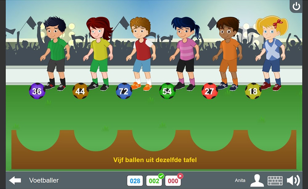 The Footballer game is a counting game, where the player have to click on the player (or ball) which will trigger an animation of a kick to the gap. There were two versions of the game available – counting up and counting down. If the ball clicked is the correct one in the order, it will sit nicely in the corresponding gap. If it is incorrect however, it will bounce awkwardly, fall out of the gap, and the ball will reset back with the player.