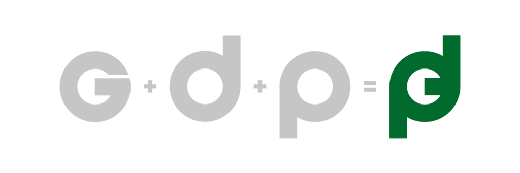 The GDP logo was created during the brainstorming phase as a way of fitting G, D and P together in a compact way, whilst also being in a squared-off form factor for ease of placement on materials.